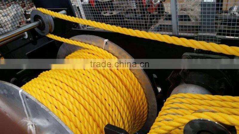 All kinds of specification of pp plastic twisting rope machine for 3 strand or 4 strand can be made by this machine. It is suitable for rope production of different material, such as HDPE&PP monofilament, danline, polyester,nylon, cotton and etc. This 3 strand pp rope making machine is equipped with frequency converter, meter counter, overtravel- limit switch and auto-stop device.It is easy to adjust the rope tensility and change the direction of twist and lay length.