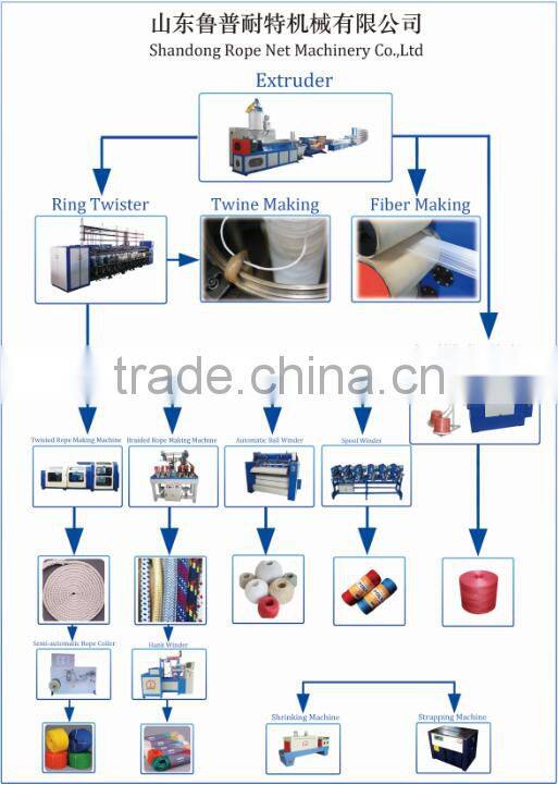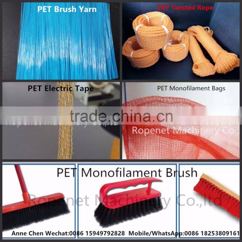 The machine can produce different size of PET monofilament fiber from 0.15 to 3mm,the fiber can be widely uses,like broom,tape,power yarn, plastic rope and etc.