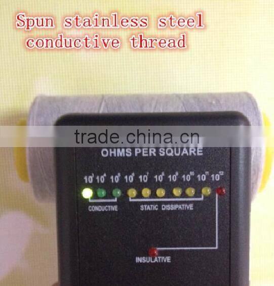 The Conductive / anti-static yarn/thread is spun polyester ,filament polyester or nylon thread twist with conductive fiber(stainless steel filament,spun stainless steel , silvered fiber ,carbon fiber ,copper fiber ), distributing evenly ,so make the thread can be conducitve or anti-static.