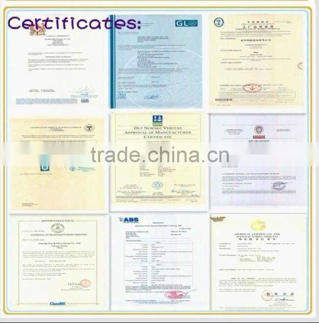 Main products are recognized by the International authoritative institutions. They received ISO9001 certification from BSI(British Standards Institution). They were allowed to use the emblem of API(American Petroleum Institute). They obtained a certificate from JIS in Japan and passed the certification of TS 16949. Our products have also obtained recognition by nine classification societies of China, France, America, Britain, Germany, Norway, Japan, Korea, Italy.