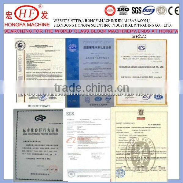Shandong Hongfa Scientific Industrial&Trading Co.,Ltd is located at east of China,our factory founded in 1990,until now we have 4 factories in china,it covers an area of more than 85,000 square meters,and totally owns almost 2,000 workers in the factory.The block making machine named "hong fa" brand have been supplied to customers in dozens of countries all over the world,like India,Indonesia,Russia,Libya,Algeria,Brazil,Vietnam,Mogolia etc.
