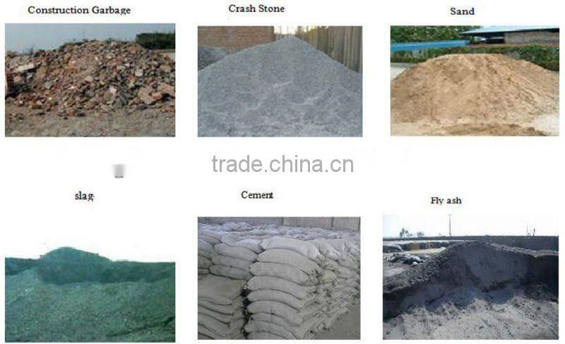 5.Raw material crushed stone, sand, cement, dust and coal fly ash, cinder, slag, gangue, gravel, perlite, and other industrial wastes.