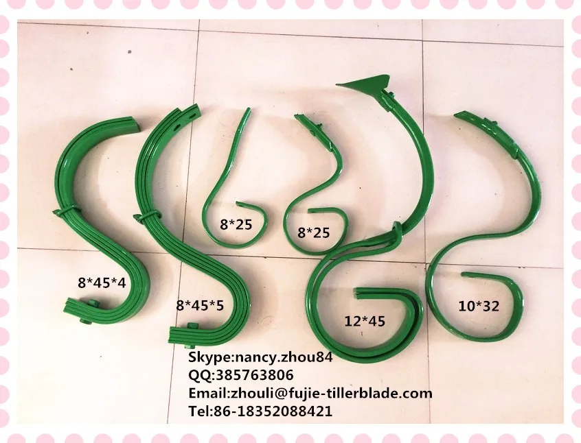 We produce rotary tiller blade , power tiller blade, cultivator machine plow tip ,cultivator machine plow shovel ,S-type spring handle ,cultivator machine accessories ,disc harrow blade, Harvester blades, Springs and so on.