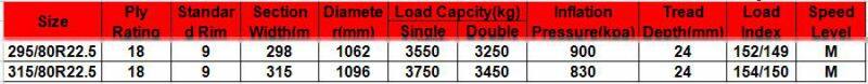 Steer and Rear Pattern Truck Tyre 315/80R22.5NegotiableMOQ: 50 Pieces