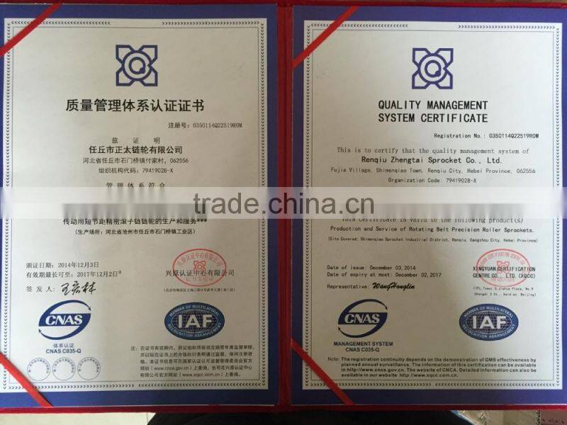 We are professional factory for motorcycle sprockets and agricultural gears builds about 34 years,we have a professional technical team, advanced production equipments,complete production line and scientific management.Our products have good market in Asia, Africa, South America and the Middle East.Renqiu Zhengtai Sprocket Co.,Ltd