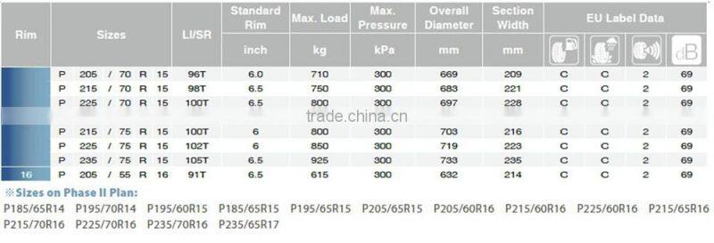 13-16inch Diameter 165-225mm Width Pcr Tires
