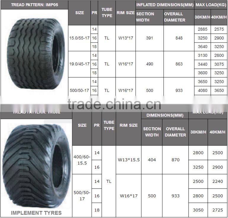 AGRICULTURAL TYRES TUBE TYPE:TL | SECTION WIDTH | OVERALL DIAMETER | 30KM/H | 40KM/H | |||
