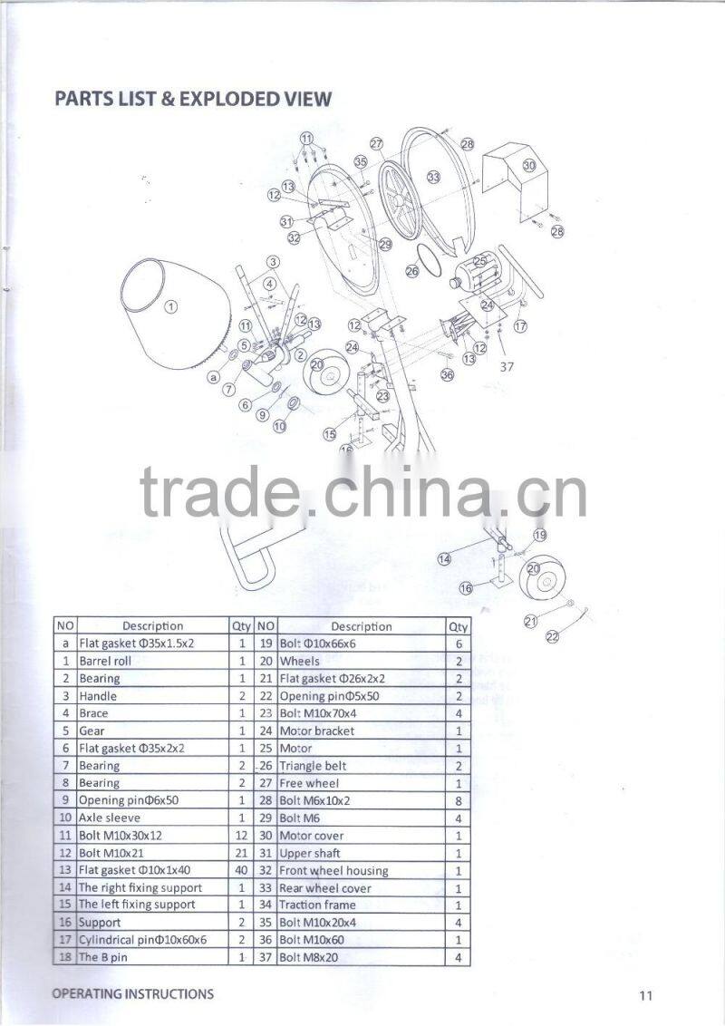Factory Low Price Guaranteed Portable Small Cement Mixer Parts