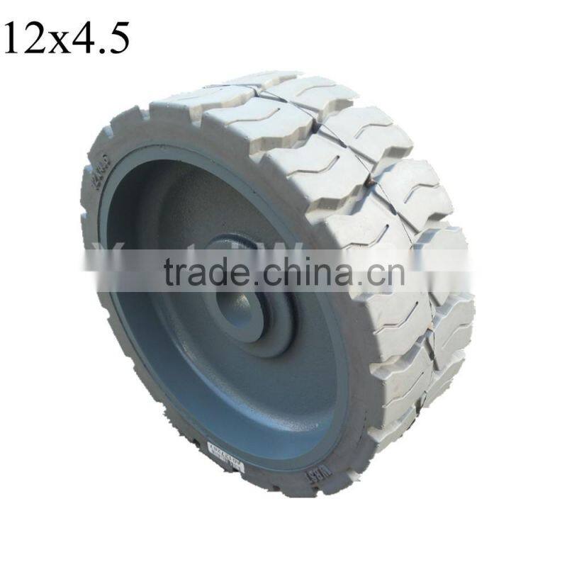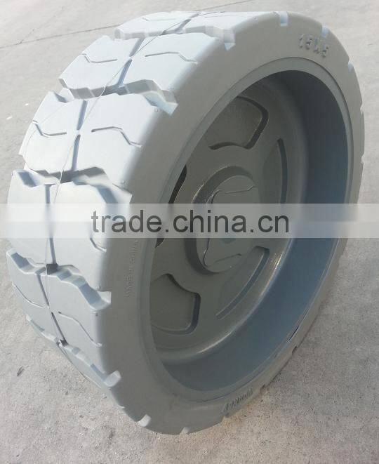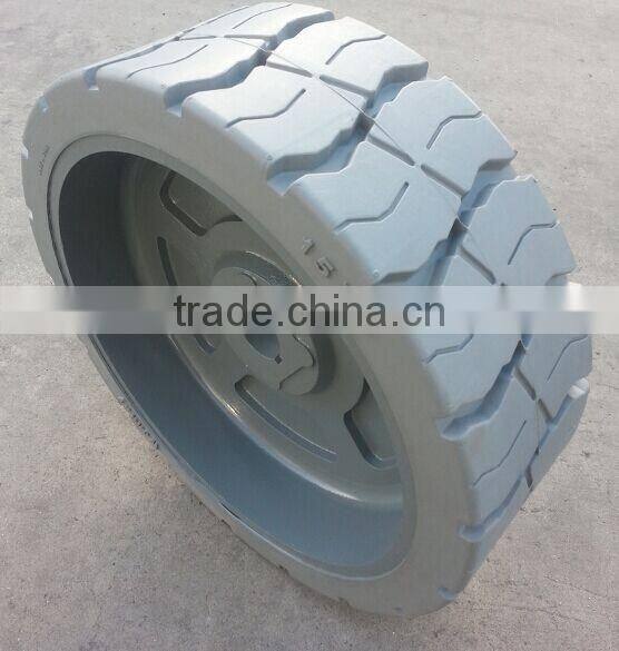 High performance non marking tires with light color or other colorful rubber compound are designed to operate where cleans floors are a priority. No mark is left on the ground when it is running or braking, especially suitable for the application of enterprises where contamination is strictly prohibited, such as pharmacy, catering trade, textile, electron, aviation, etc.