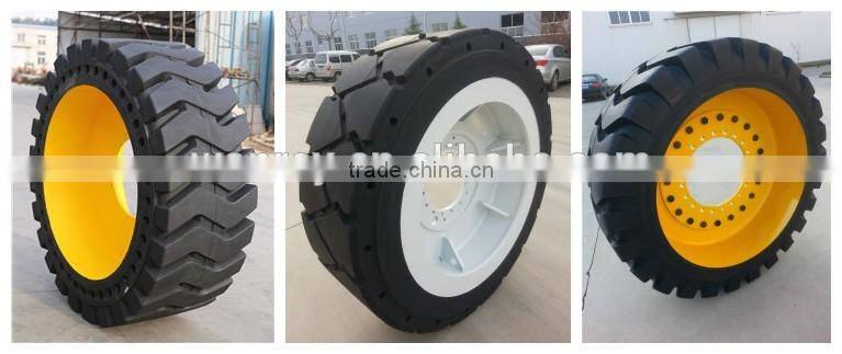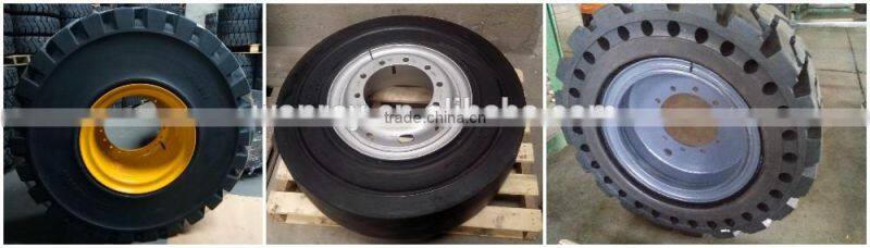 Our main products: solid tires for pneumatic,solid OTR tires,press-on solid tire,solid tire for lifting platformfor,Rims.