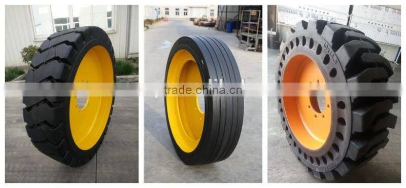 Any sizes solid tires,we can produce black type, clip Linde type, and non marking tires.