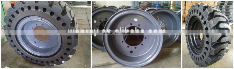 Our main products: solid rubber tires for pneumatic,solid rubber OTR tires,press-on solid rubber tire,solid rubber tire for lifting platformfor,Rims.