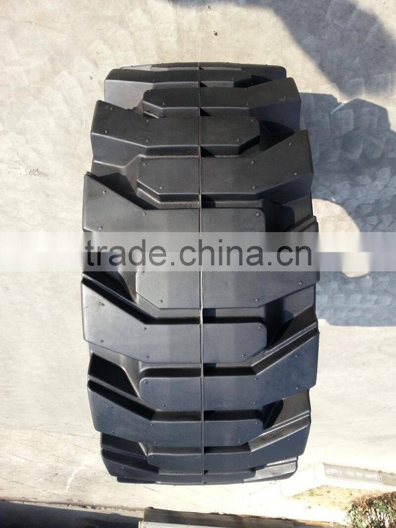 For solid skid steer tires, we have solid tire with separable rim, mold on wheel solid tire, and solid tire with no rim.