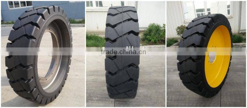 Any sizes solid tires,we can produce black type, clip Linde type, and non marking tires.