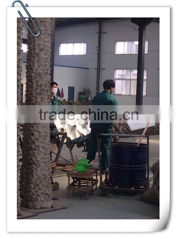 Inside it there are national standard thickening galvanized steel pipes with seamless connection which are used for reinforcement, rust prevention and anticorrosion. The cortex is composited by the original tropical tree bark, palm tree and glass fiber reinforced plastics. The resin used in the glass fiber reinforced plastics has passed China classification society ISO9001:2008 certification. It can make the glass resist strong breeze and prevent from flame and also get the ability to resist air, water,acid,alkali and salt. The bark colour is disposed from deep cleans to tintage for four times. It can be guaranteed that there’s no obvious fading within 10 years. And the outline can definitely mix the false with the genuine.