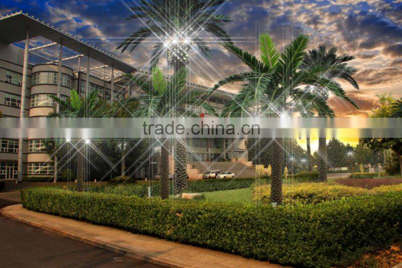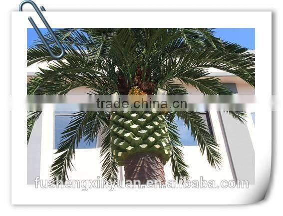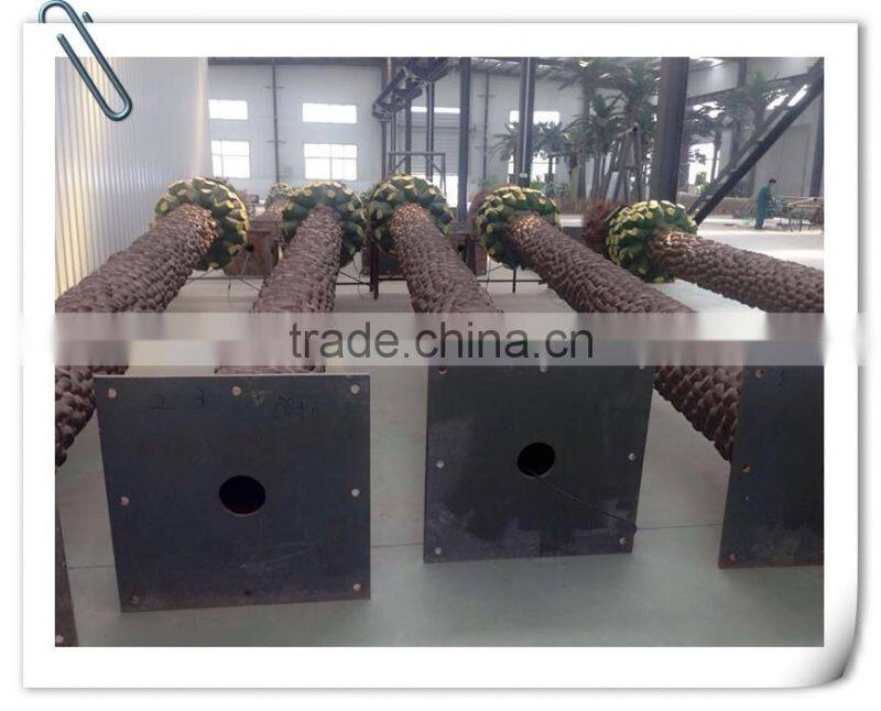 Inside it there are national standard thickening galvanized steel pipes with seamless connection which are used for reinforcement, rust prevention and anticorrosion. The cortex is composited by the original tropical tree bark, palm tree and glass fiber reinforced plastics. The resin used in the glass fiber reinforced plastics has passed China classification society ISO9001:2008 certification. It can make the glass resist strong breeze and prevent from flame and also get the ability to resist air, water,acid,alkali and salt. The bark colour is disposed from deep cleans to tintage for four times. It can be guaranteed that there’s no obvious fading within 10 years. And the outline can definitely mix the false with the genuine.