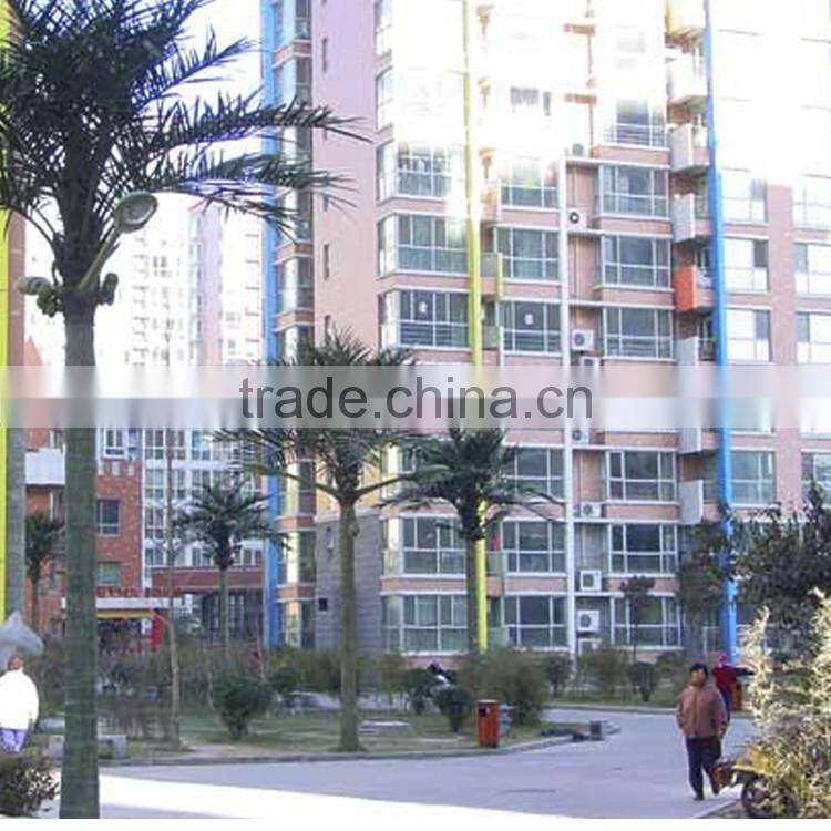 Inside it there are national standard thickening galvanized steel pipes with seamless connection which are used for reinforcement, rust prevention and anticorrosion. The cortex is composited by the original tropical tree bark, palm tree and glass fiber reinforced plastics. The resin used in the glass fiber reinforced plastics has passed China classification society ISO9001:2008 certification. It can make the glass resist strong breeze and prevent from flame and also get the ability to resist air, water,acid,alkali and salt. The bark colour is disposed from deep cleans to tintage for four times. It can be guaranteed that there’s no obvious fading within 10 years. And the outline can definitely mix the false with the genuine.