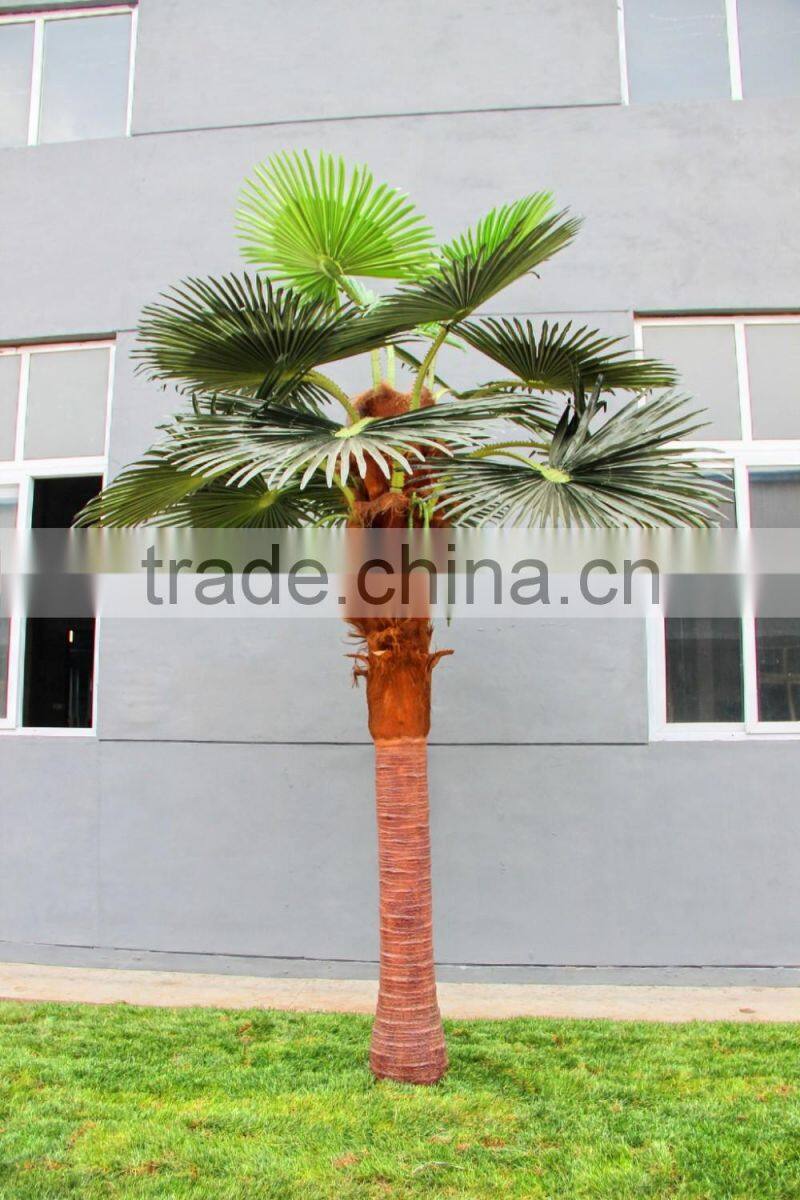 Inside it there are national standard thickening galvanized steel pipes with seamless connection which are used for reinforcement, rust prevention and anticorrosion. The cortex is composited by the original tropical tree bark, palm tree and glass fiber reinforced plastics. The resin used in the glass fiber reinforced plastics has passed China classification society ISO9001:2008 certification. It can make the glass resist strong breeze and prevent from flame and also get the ability to resist air, water,acid,alkali and salt. The bark colour is disposed from deep cleans to tintage for four times. It can be guaranteed that there’s no obvious fading within 10 years. And the outline can definitely mix the false with the genuine.