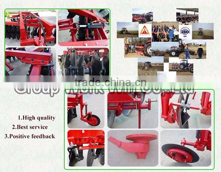 Disc plough is attached to four-wheel tractor, the disc of plough are revolving to furrow the land during operation. The disc plow is especially suitable for land which have weeds , stems and frictional soil with small brick etc.