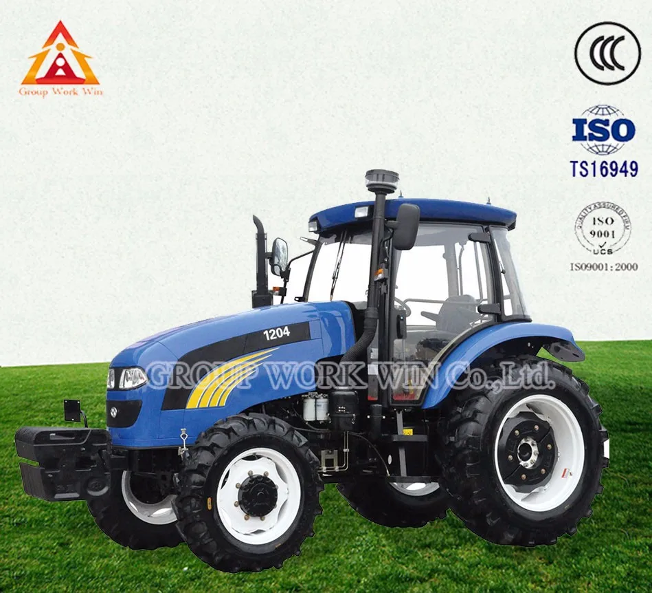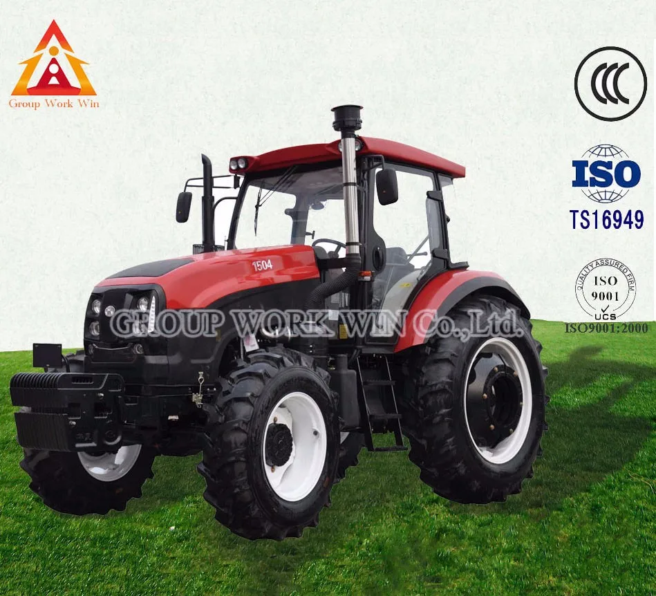 Groupworkwin 90-150HP tractor is a versatile, high-horsepower agricultural tractors. This model of tractor has compact structure, convenient operation, flexible steering, big traction force, versatile and easy maintenance Characteristics. This series of tractor use the TF chassis, 4 wheel drive, 16F+8R gear box, Hydraulic steering, double clutch. And the 3-point Linkage is adjustable by floating way. The series can choose to equip the roll bar, hydraulic multi-valves, heater and AC cabin.