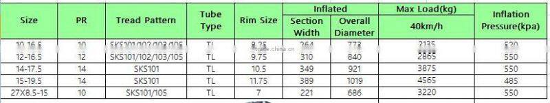 Skid Steer Tyre 10-16.5,12-16.5,14-17.5,15-19.5,27X8.5-15