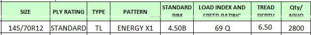 | SIZE | LOAD/ SPEED | Pattern name | QTY/40'HQ |