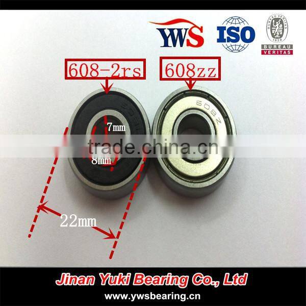 608 in the bearing 6 represents six deep groove ball bearings, 0 is the size of the series, 8 shows the inner diameter size of 8mm, if the bearings are standard parts, dimensions is usually one of the older models represented by 80018. Dimensions are: diameter 22mm, height 7mm, inner diameter of 8mm. Ball 7, ball diameter 3.969mm. But there are non-standard size according to user specifications Manufacturing
