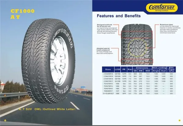 1. Our Own Brand COMFORSER. We promise competitive price, prompt delivery and good service, and are looking for qualified distributors worldwide, offering market protect and tire warrenty policies to protect our customers long-term benefits.