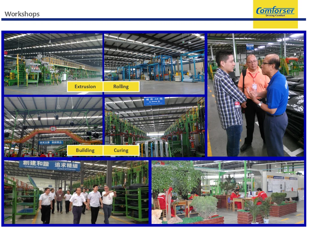 1. Our Own Brand COMFORSER. We promise competitive price, prompt delivery and good service, and are looking for qualified distributors worldwide, offering market protect and tire warrenty policies to protect our customers long-term benefits.