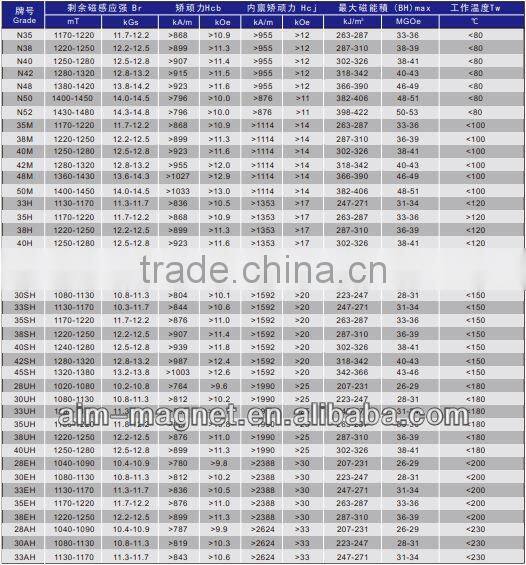 2. Grades: From N35 to N52;N35H to N48H;N35SH to N45SH;N30UH to N40UH;N30EH to N38EH.If you donot know,we can suggest the Grade No. according to your application
