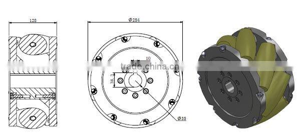 With a series of rollers attached to its circumference, these rollers having an axis of rotation at 45° to the plane of the wheel in a plane parallel to the axis of rotation of the mecanum wheel. Depending on each individual wheel direction and speed, the resulting combination of all these forces produce a total force vector in any desired direction. thus allowing the platform to move freely in the direction of the resulting force vector, without changing of the mecanum wheels themselves.It is perfect for tight space.These wheels are sold in assembled units, with many rollers per wheel. Each roller is a heavy-duty wheel itself.These offers capacity up to pounds at least.Typical applications include Material handling, table lift, and Heavy dusty vehicle etc.Especially in warehousing andlogistics,could improve efficiency and promote the development of the industry.Mecanum wheel would have a huge technological revolution.