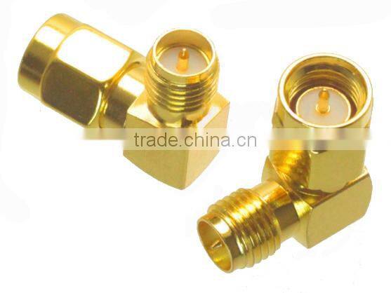 Golden 90deg Right Angled SMA Male to RP-SMA Female Adapter RF Coaxial Connector