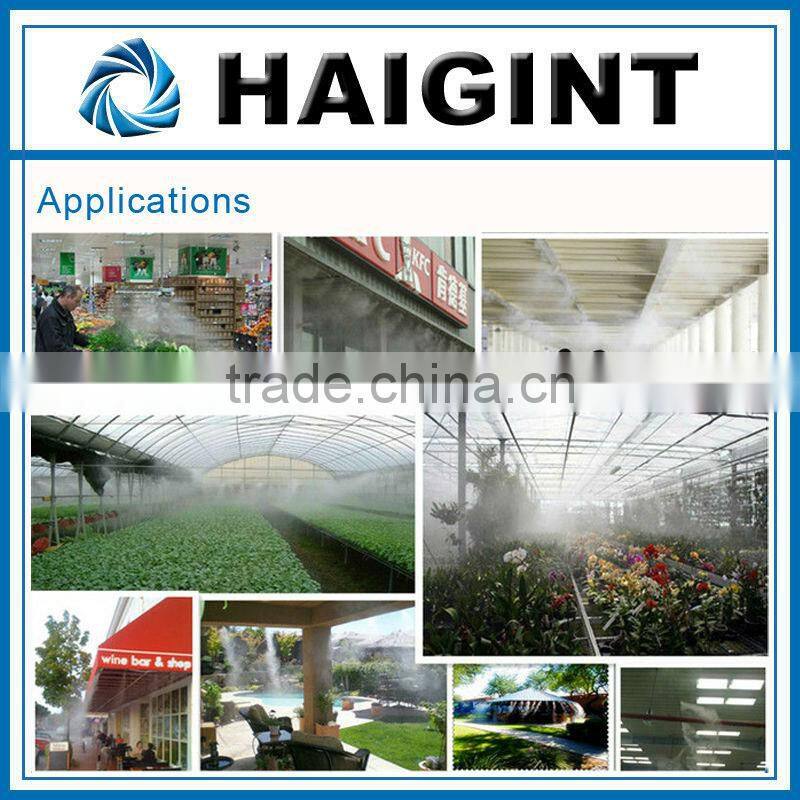 Haigint ,a company professional in manufacturing sprayer products for daily use,such as the misting fitting,misting fan,misting pump,misting tubing,PE tubing,misting ring ,etc.we have the first-level technology in this field.our products can be used for workshop outdoors,greenhouse,patio,restaurant,etc.we guarantee the quality of our product and we take the client's interest into our first consideration .
