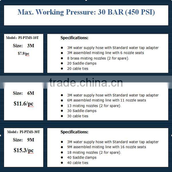 TY1280 Fashion Package Outdoor Portable Greenhouse Misting System for Cooling,Mistand Snake System