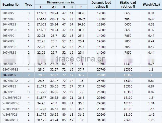 Hex bore agricultural machinery bearing 207KRRB9 sizes