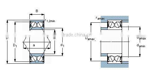 Double row angular contact ball bearing inner and outer ring of the tilt between the limited, allowing the tilt angle depends on the internal clearance of the bearing, bearing size, internal design and role in bearing the force and torque, and the maximum allowable inclination angle should ensure that the bearing will not produce high additional stress.