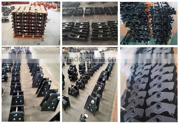 1.The front, middle and rear spring hangers are made of high tensile low alloy steel plates (pressed and welded into structure) stronger but lighter than the old type.