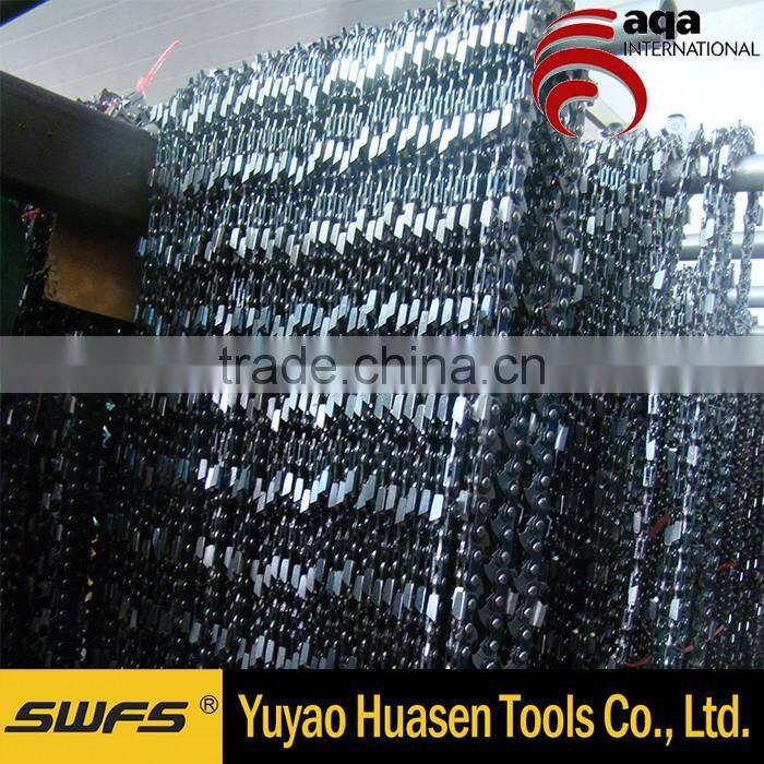 Now the independent research and development product of our factory including:1.All kinds of saw chain series,saw chain parts and chain saw parts.;2.Haredware fitting,Aluminum products,Auto parts,etc. Our factory have the full production line from imported steel material,model tooling to punch, heat treatment,chromeplate,rivet,automatic assemble to package.to assure supply our clients stable and high quality products.
