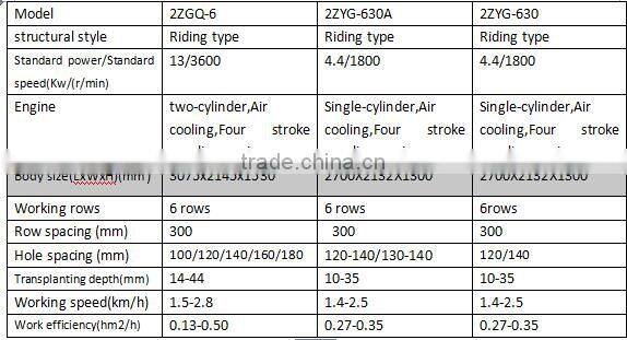 The Riding type Rice transplanter mail model as follows: