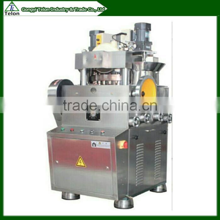 This machine is designed for pressing all kinds of granular materials into a round plate, and is suitable for batch production of the basic equipment. Rotary speed, the depth of the filling and tablet thickness can be adjusted. The mechanical buffer device can avoid the overload and cause damage to the machine. The machine can be another match suction powder box, through the suckers to absorb dust, avoid bonding jams, and recycle raw materials to use.
