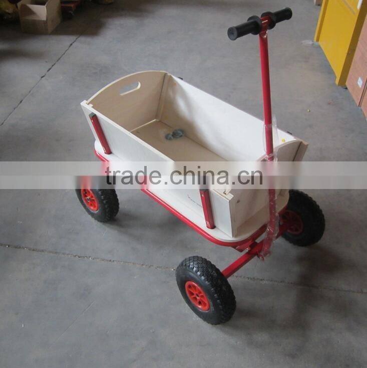 OUTDOOR WAGON ALL TERRAIN PULLING KID CHILDREN GARDEN CART W/WOOD RAILING RED
