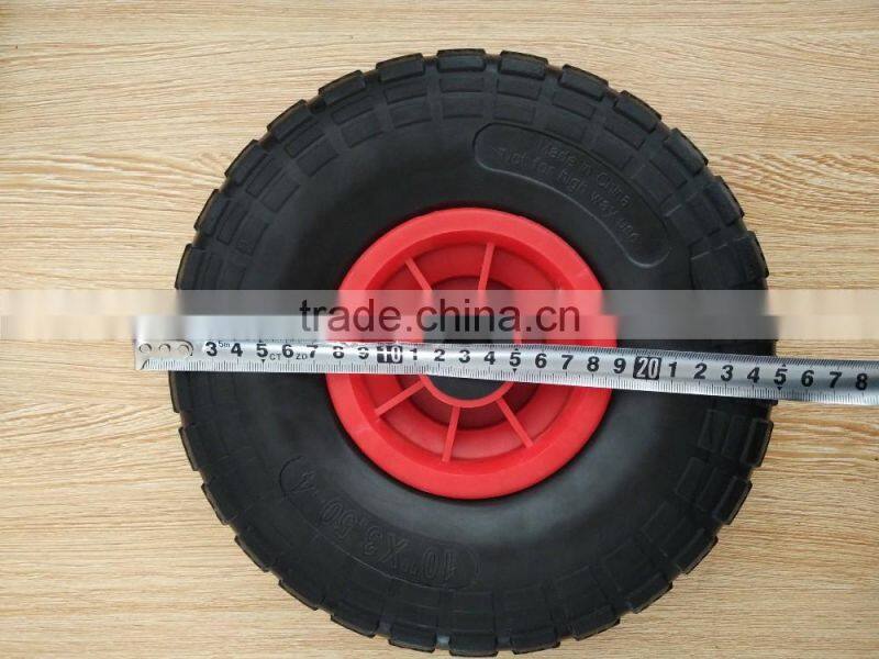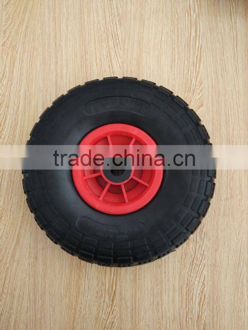 hot sale durable red plastic rim 10"x3.50-4 PU wheel