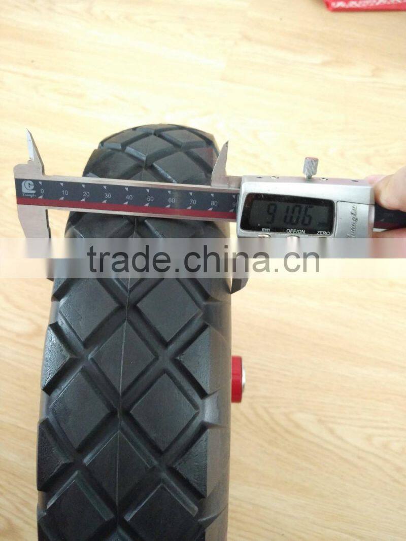 Solid rubber wheel: 6x1.5, 7x1.75, 8x1.75, 8x2.5, 10x1.75, 10x2.75, 11x4.00-4, 13x3, 13x5.00-6 and other sizes according to your requirements.
