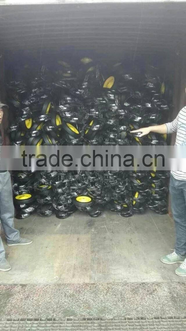 PU foam rubber wheel sizes: 6x1.5, 7x1.75, 8x1.75, 8x2.5, 10x1.75, 10x2.75 , 8x2.50-4, 2.50-6, 9x3.50-4, 10x3.00-4, 10x3.50-4, 11x4.00-4, 12x3.50-6, 13x4.00-6, 14x3.50-8, 16x4.00-8, 13x5.00-6, 15x6.00-6, 16x6.50-8, 18x8.50-8 and other sizes according to your requirements.