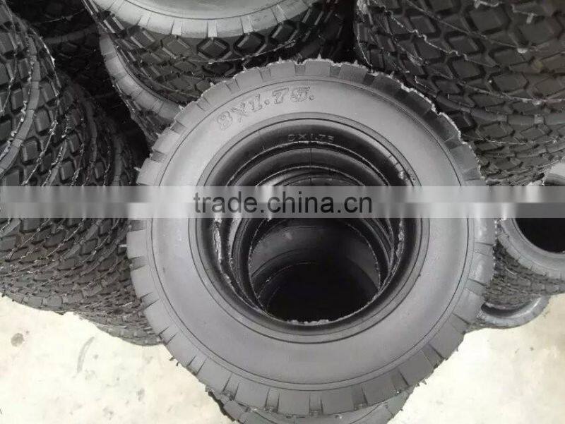 Pneumatic rubber wheel: 6x1.5, 8x2.50-4, 2.50-6, 9x3.50-4, 10x3.00-4, 10x3.50-4, 11x4.00-4, 12x3.50-6, 13x4.00-6, 14x3.50-8, 16x4.00-8, 13x5.00-6, 15x6.00-6, 16x6.50-8, 18x8.50-8 and other sizes according to your requirements.