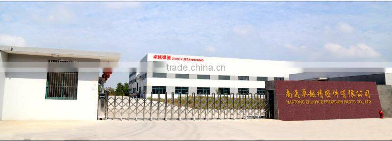 Nantong Zhuoyue Accurate Fittings Co., Ltd, established in 2002, is a modern trading company,we have our own factory! specializing in the research, design, manufacture, sale and service of springs & spring fittings. The company has fixed assets of 50 million RMB and covers an area of about 15,000 square meters. At present, we have about 38 employees, including 8 technical personnel, 12 management personnel, marketing personnel. There are more than 80 sets of production & test equipments, including computerized coiling machine, wire forming system, hot coiled spring line, computer 8-model machine, automatic quenching & annealing line, automatic grounding machine and shot peening machine. With the most advanced spring production equipments, we can manufacture different kinds of springs with diameter from 0.1mm to 80.0mm. Our daily output is about 40 million pieces. Our products include compression springs, extension springs, torsion springs, belleville springs, spiral springs, wave springs, disc springs, wire form springs, punching components, stainless steel springs and so on. Spring hardware products are widely used in transportation accessories, agricultural equipments, elevator accessories, sports fitness equipments and other industries. Agricultural machinery parts springs are one of our main products, such as the baler machine spring tooth, hay rake machine spring-tooth, rubber spring tooth, harvesting machinery springs, spring-tooth hard machinery, etc. In 2007, the company passed the ISO9001:2000. We have won a good reputation from customers relying on good quality, considerate service and competitive prices. Sincerely hope that we could have the chance to work with you in the near future, and create a brighter future together with you !