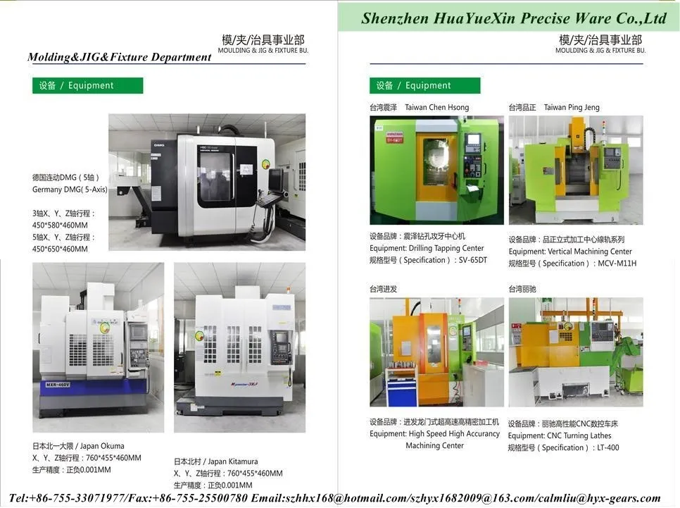 Shenzhen HuaYueXin Precise Ware Co. Ltd, founded in 2008 and located in Shenzhen, Guangdong, China, is specialized in providing design, developing and manufacturing various metal/plastic gears, gearbox etc high precision power transmission mechanical products .