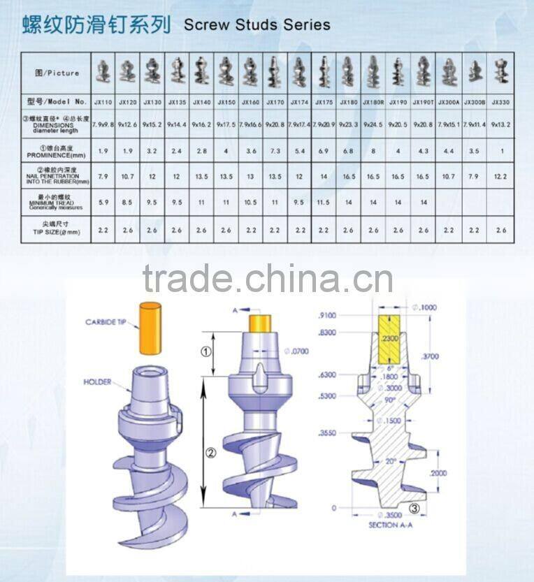 Hot sale carbide pin for tyre stud from Zhuzhou for studed tire can be easily installed and removed without professional installation tools. it can also be disassembled according to the season, when not in use, it could be removed lightly and stored for using again in the following season. Choose appropriate size of new studs in the installation process in terms of the depth of tire thread.