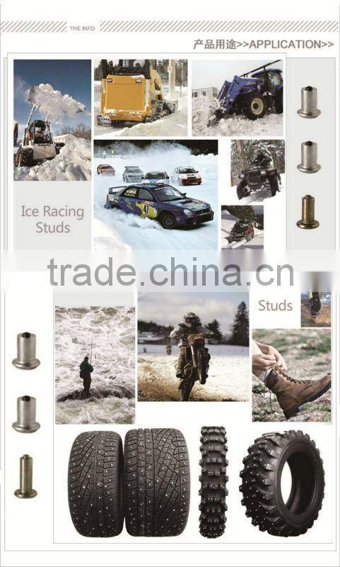 Tire studs Division:Professional design, production of various types of tire studs for motorcycle, racing, cars, outdoor shoes, etc.