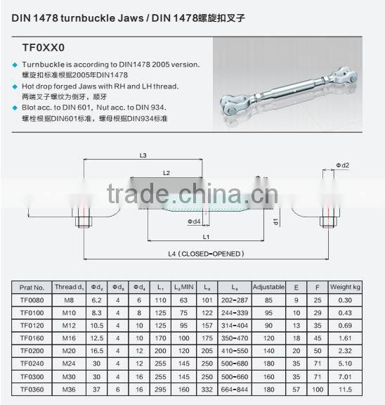 Product: JAW JAW Turnbuckle DIN 1478 TOP QUALITY 6H&6g tolerance matching